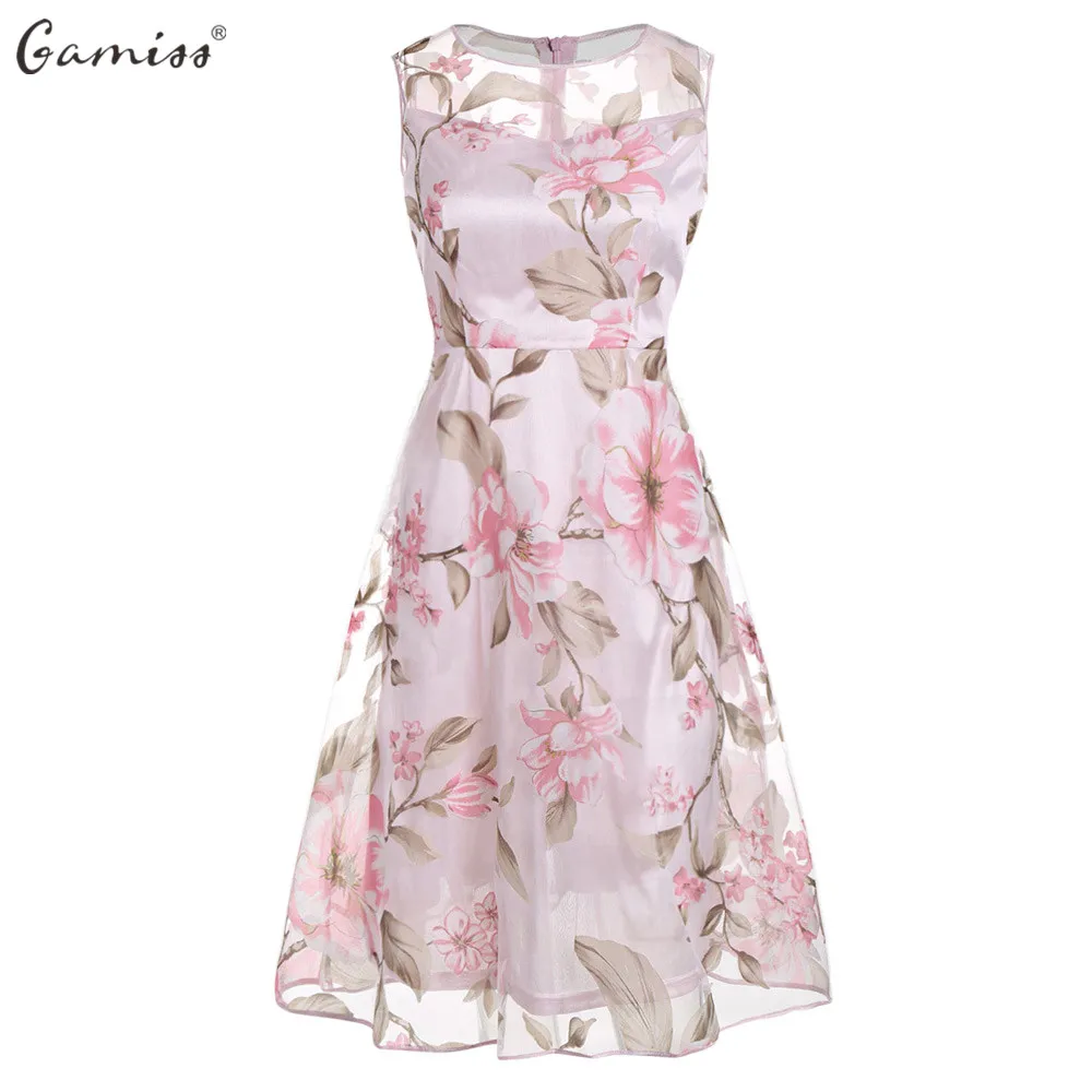 Fashion Sleeveless Organza Dress Ladies Stylish Floral Print Dress Summer Clothing For Women Pink/M