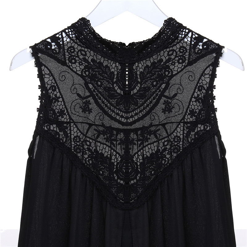 Summer Dress New Lace Dress Sleeveless Hollow Shiner O-Neck Solid Color Dresses For Women