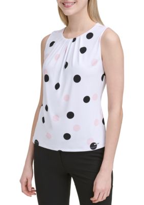 Calvin klein sleeveless polka dot pleat neck tan quinceanera blues