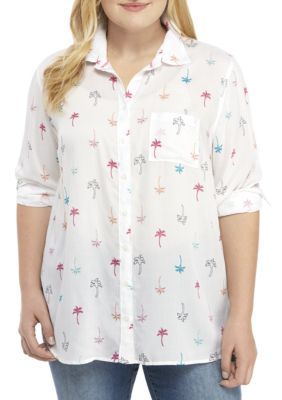 Convertible sleeves crinkle button-front makes this shirt A trim of crinkle-finish cotton into a classic boyfriend shirt with convertible sleeves.