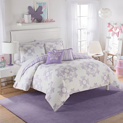 Create a fun, flirty bedroom for your little one with this Waverly Kids Ipanema Reversible Comforter Set.The plush, comfy comforter features butterflies in circular designs.Reverse features coordinating light purple and light grey stripes.5/5(1).